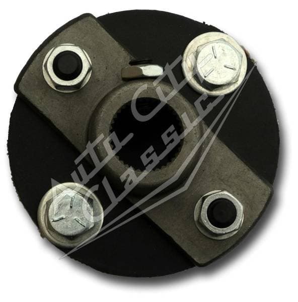 The universal rag joint is used between the steering column and steering box to reduce vibration and pulsations from the steering pump. Rag joint is zinc phosphate coated to prevent rust and corrosion.
