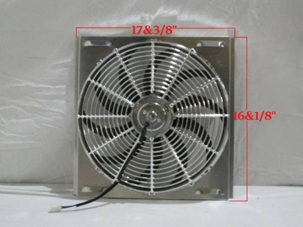 Universal aluminum shroud and single 2600 CFM 16" plastic fan.