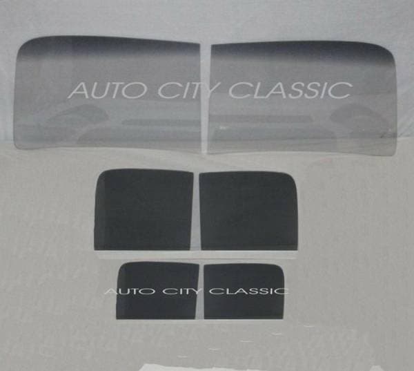 Set Includes:New 2 Piece Windshield, 2 Door Glasses and 2 Piece Back Glass.
