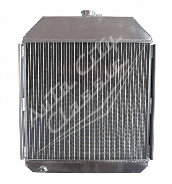 New custom performance fit bolt in aluminum radiator with built in transmission cooler for 41-49 IH Pickup.