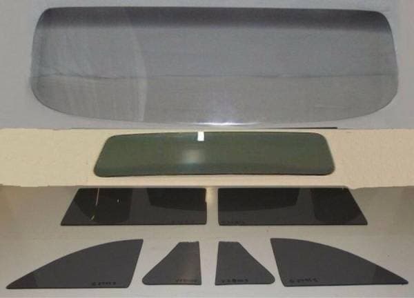 Set Includes: 1 Piece Windshield, 2 Vent Glasses, 2 Door Glasses, 2 Quarter Glasses and Rear Back Glass