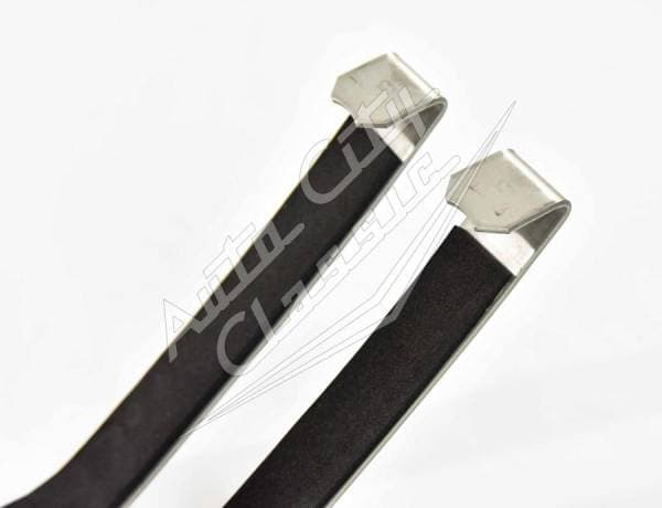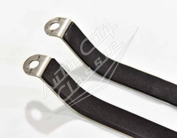 Reproduction pair of stainless steel straps for 54-56 Caddy. Insulating pads included.