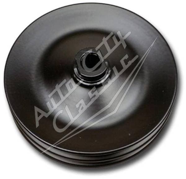 Reproduction 2 groove black power steering pump keyed pulley for 54-64 Chevy small or big block models. This pulley will work with a short or long water pump. Replaces GM part number 3941107DE and is used on a variety of different power steering conversions.