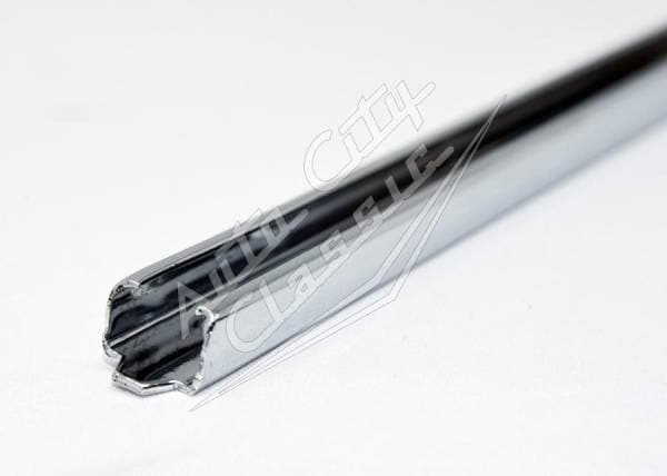 Reproduction chrome retainer that attaches to the front of the quarter window frame that the vertical quarter window seal attaches to. Left and right are the same. If you need both, order 2 of this item.