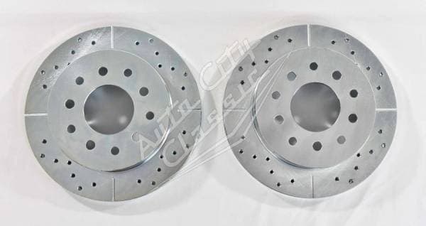 11" Drilled and slotted rotors with anodized finish- dual bolt pattern 5 on 4.5" and 4.75" (2)