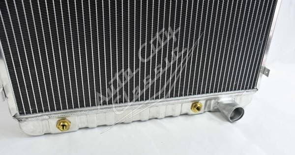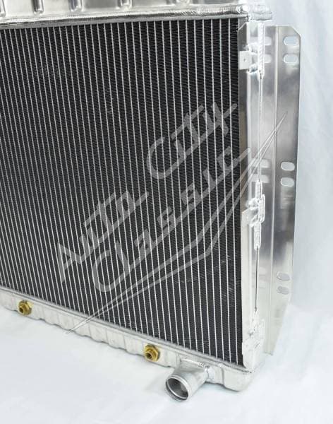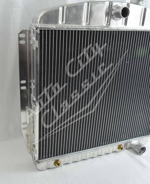 This radiator is a direct bolt in for the 1955 2nd series - 1959 Chevrolet pickup. It is a welded construction, there is no epoxy used in these radiators. Built in transmission cooler has dual 1 1/8" high flow tubes for maximum cooling.