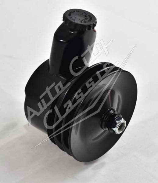 New power steering pump assembly for 55-64 Chevy models with aftermarket power steering. This is most commonly used with 500 Series or 605 steering conversions. Assembly includes pump, reservoir, double groove pulley and cap.
