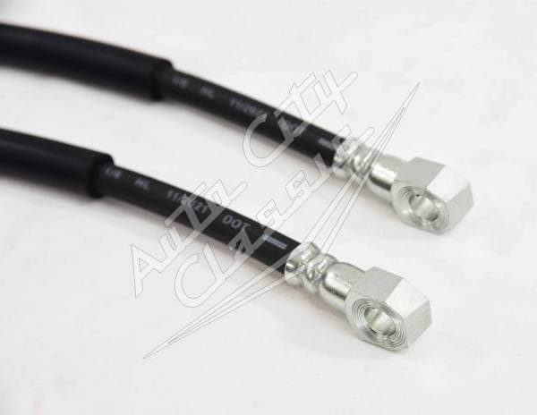 New pair of rubber flex 10MM disc brake hoses for 55-64 Chevy Passenger Cars. Hoses are 16" in overall length. Banjo bolts and washers included.