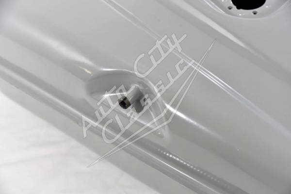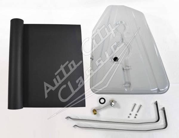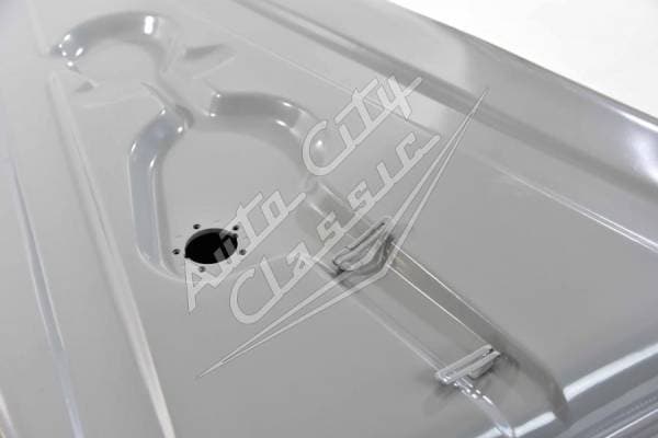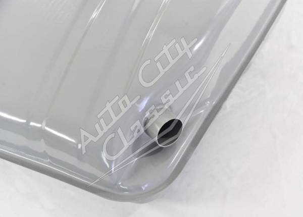 Reproduction steel tank includes sending unit gasket with screws and drain plug.