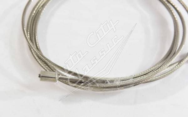 Reproduction center emergency parking brake cable for 58-64 Chevy models. Quality design with flexible casing and tough exterior to protect inner cables, prevent corrosion and maintain proper tension. Cable is 89" and connects the equalizer with the two rear brake cables.