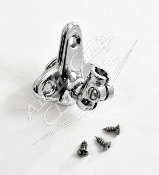 New reproduction sun visor bracket for 58 Chevy Bel Air 2 door hardtop models. This bracket attaches the sun visor to the cars roof , allowing it to pivot while still secured in place. Sold individually. Screws included.