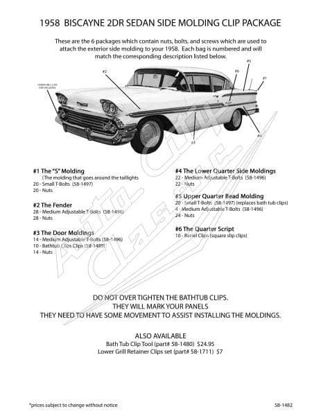 Side Molding Clip Set- Fits Models: 1958 Chevrolet Biscayne 2 Door Sedan