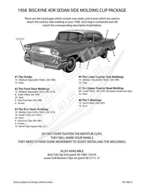 Side Molding Clip Set- Fits Models: 1958 Chevrolet Bisacayne 4 Door Sedan