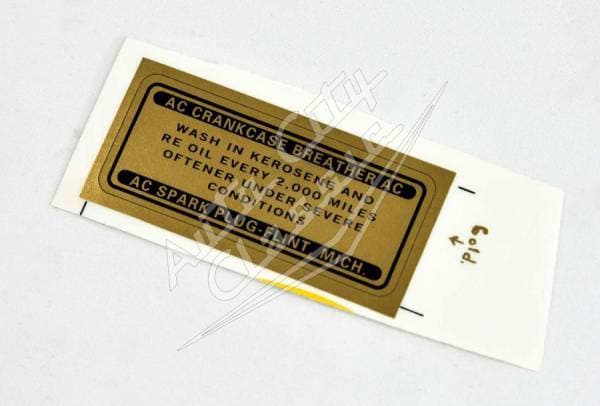 AC Crankcase Breather Decal- Fits Models: 1958 Chevrolet 6 Cylinder and V8