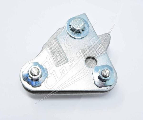 New reproduction quarter window pivot bracket for 58 Chevy Impala Convertible. The pivot window brackets act as a hinge, allowing the quarter windows to swing open and closed.