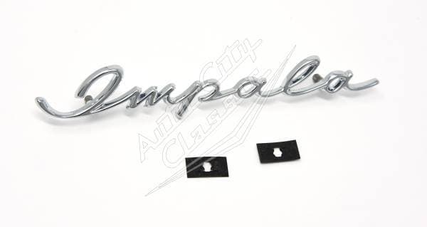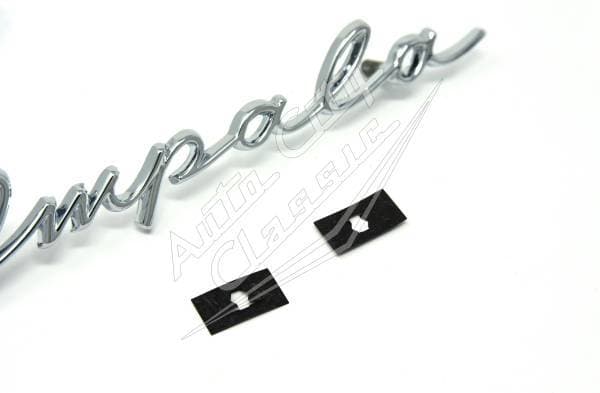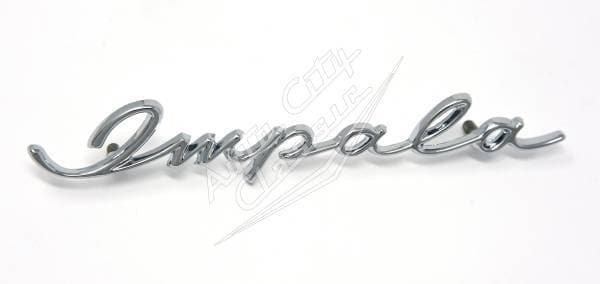 New reproduction "Impala" dash script for 58 Chevy Impala. This is a distinct, eye-catching feature on the 58 Impala and is easily identifiable by the script-style lettering.