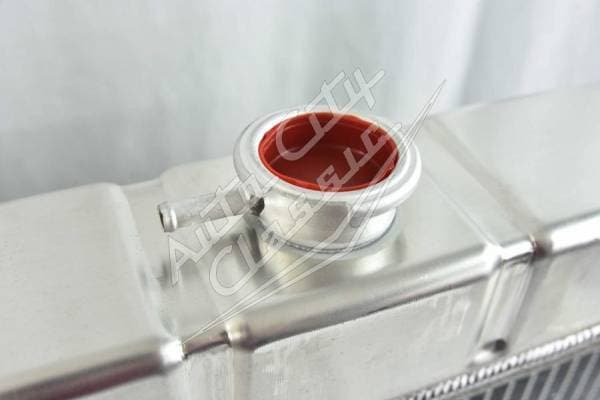 New direct bolt in aluminum radiator with internal transmission cooler and dual 1 1/8" aluminum tubes for maximum cooling. This comes with petcock and has the tranny cooler for your automatic transmission. The cooler can also be plugged for the manual transmission cars. Also works well for retro fit applications.