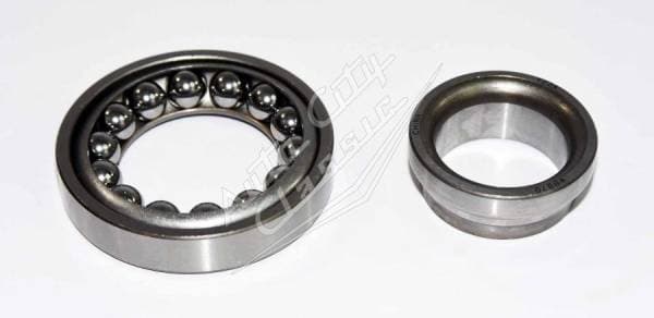 New reproduction front inner wheel bearing with race for 58 Chevy models. The wheel bearing allows the wheel to spin with minimal friction while supporting the weight of the vehicle. It is a tapered roller bearing that fits inside the wheel hub, and the race is the hardened outer ring that the bearings rollers roll against. Sold individually.