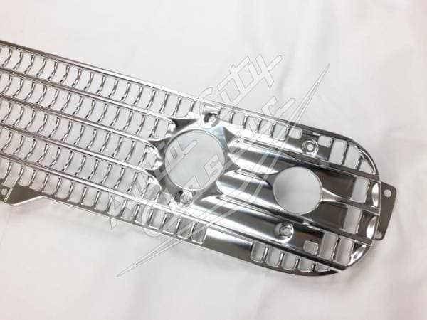 New reproduction grille for 58 Chevy models. Inspired by jet aircraft, the grille is a prominent, wide and rectangular design feature that was a key element to the 1958 Chevrolet line. The grille and dual headlights contributed to the car's powerful appearance!