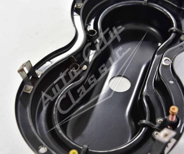 New reproduction headlight bucket housing for 58 Chevy models. This is located at the front of the vehicle, behind the headlight lens. It's primary function is to hold the headlight bulb and lens in place. Adjusters and springs included. Sold individually.