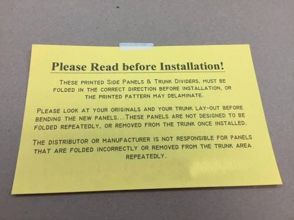 New reproduction cardboard trunk filler panel for 58 Chevy models. This panel acts as a filler, concealing the area between the trunk floor and the rear quarter panel. Carefully read the full instructions before folding and installing to ensure the best quality.