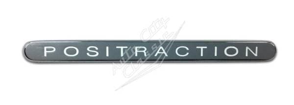 New reproduction "Positraction" dash emblem for 58 Chevy models. This emblem can be found on the glove box and signifies that the vehicle is equipped with a mechanical component in the rear axle that improves traction.