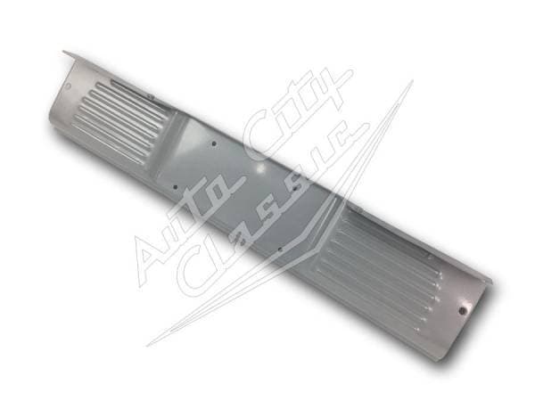 New reproduction powder coated rear bumper filler panel for 58 Chevy models. Also known as, the license plate panel, this filler panel sits between the rear bumper and the body of the car. Its main function is to seal the gap between the bumper and the cars body but it also provides protection from dirt, dust, water and road debris.