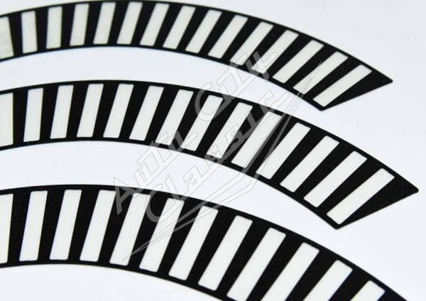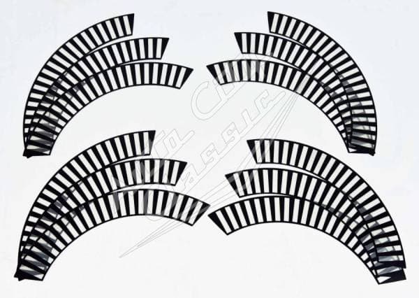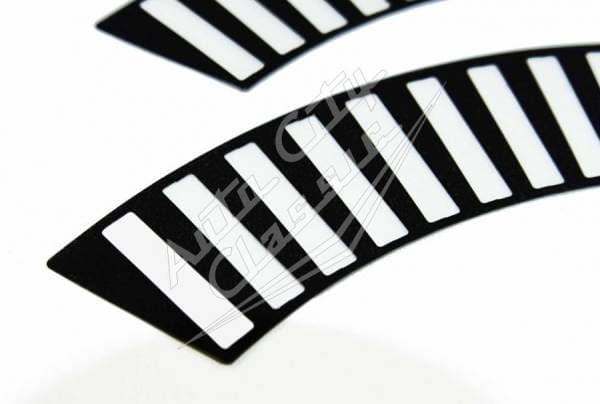 New reproduction 12 piece wheel decal kit for 58 Chevy models. This set of adhesive decals is designed to replace the original decals on the wheel covers. Fitment is exact on the wheel cover to show the black and clear difference. Restore the appearance of your wheel covers! Easier than painting and looks great!