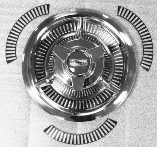 12 Piece Wheel Cover Decal Kit- Fits Models: 1958 Chevrolet Bel Air, Biscayne, Delray and Impala