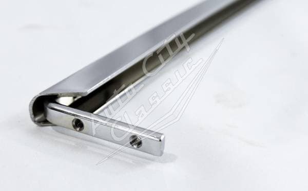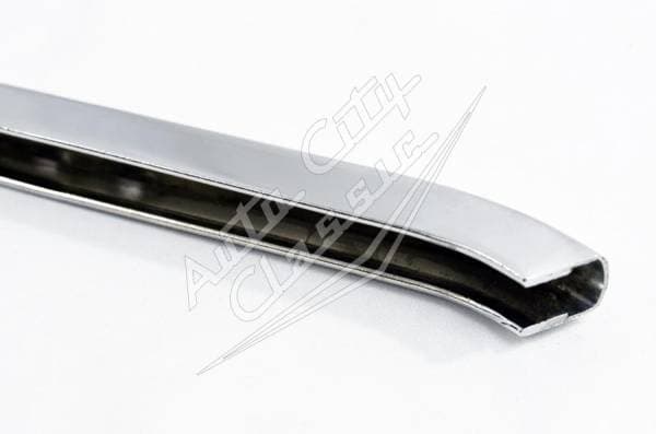 New chrome plated reproduction upper quarter frame. Direct replacement for the upper portion of the glass to fit into.