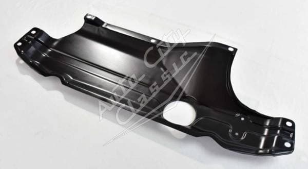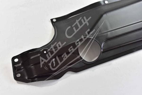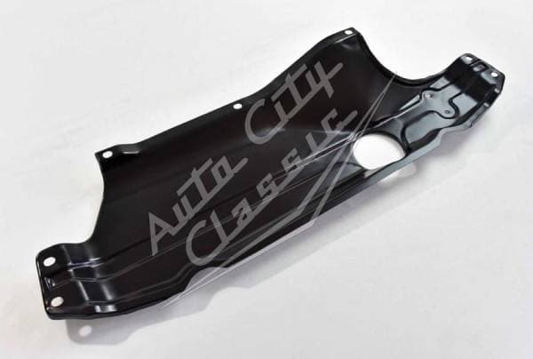 New reproduction under radiator splash shield for 59-64 Chevy Passenger Car Models. This piece is designed as a protective barrier against rocks, water and other debris that may be on the road.