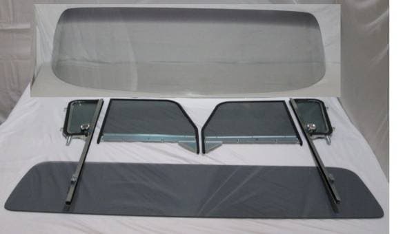 Set Includes: Windshield, 2 Vent Glasses installed in new frames, assembled in new vent posts and 2 Door Glasses installed in upper frames and lower channels and Large Rear Back Glass