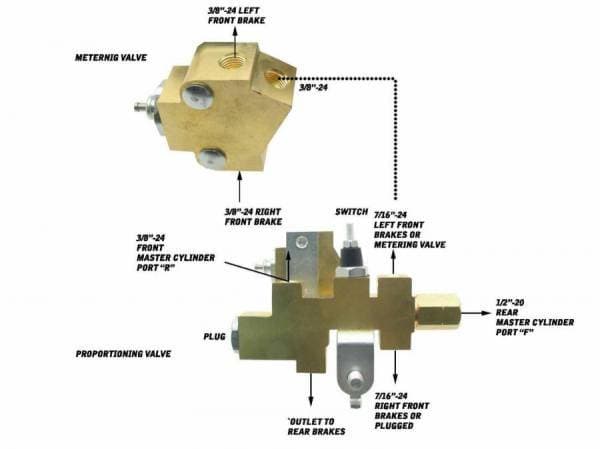 OE Style Mopar metering block mounted to a proportioning valve for 60-74 Mopar disc front and drum rear.