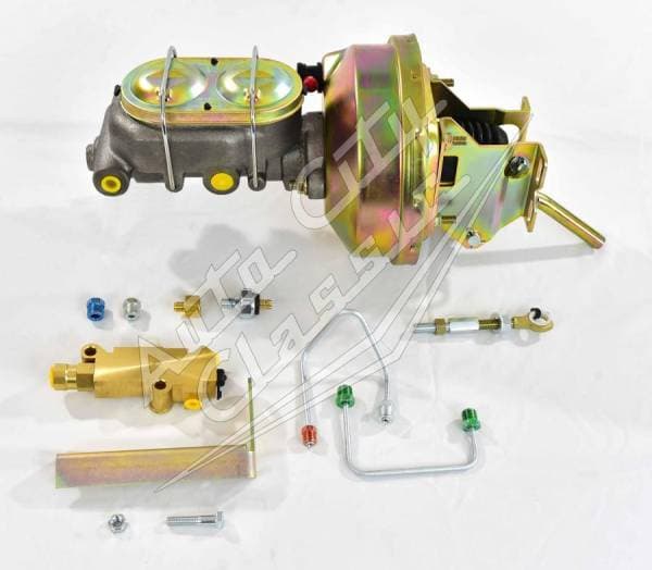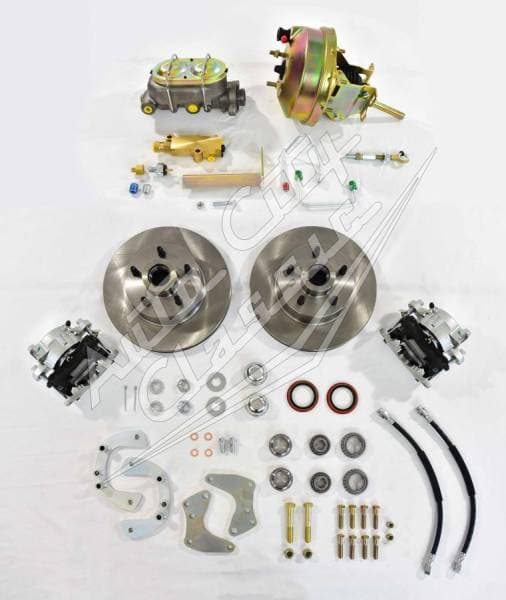 Kit Includes: Gold Brake booster (1) with master cylinder (1) and proportioning valve (1) Rotors- 5 on 4.5" bolt pattern (2) Calipers with pads and brackets (2) Hardware: Rubber hoses, banjo bolts, bearings and seals