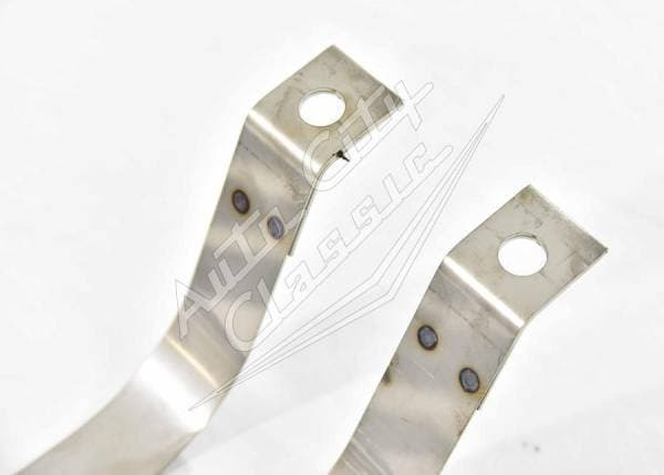 New reproduction pair of stainless steel fuel tank straps for 61-67 Ford Econoline models.