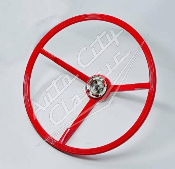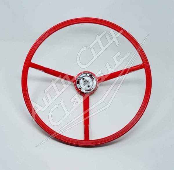 Reproduction 17" steering wheel for 63-64 Ford Galaxie models. This is original for manual steering models. Power steering models were manufactured with a 16" wheel but can also use this 17". Wheel works with original horn ring. Available in black or red.
