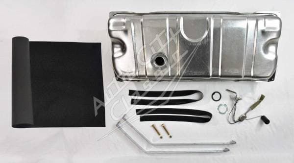 20.5 Gallon OE Finish Steel Fuel Tank- Optional Sending Unit, Straps and Tank Pad OE FInish- Terne Plate Steel Gas Tank with Small Indent- 20.5 Gallons Dimensions: 38" x 15 3/4" x 11 3/4"