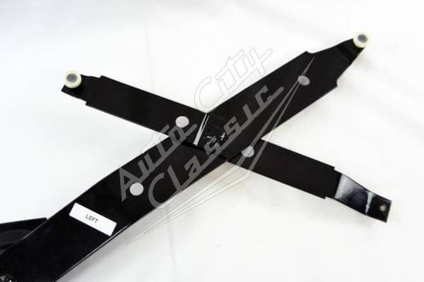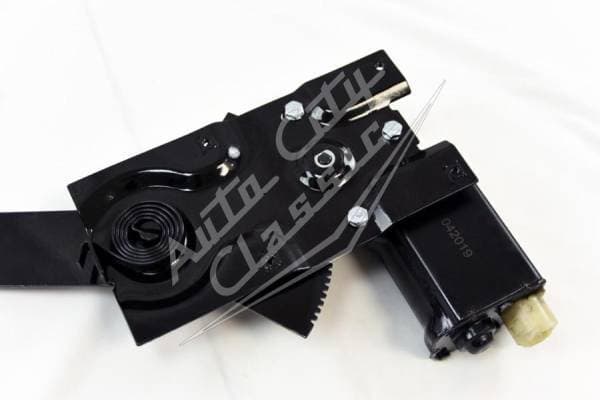 One reproduction power door regulator to lower the window down and raise it up. Motor available. Left side is the driver's side. Right side is the passenger's side.