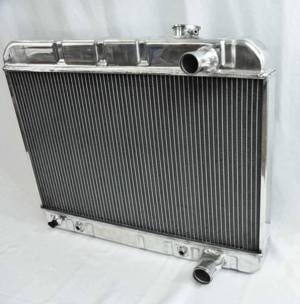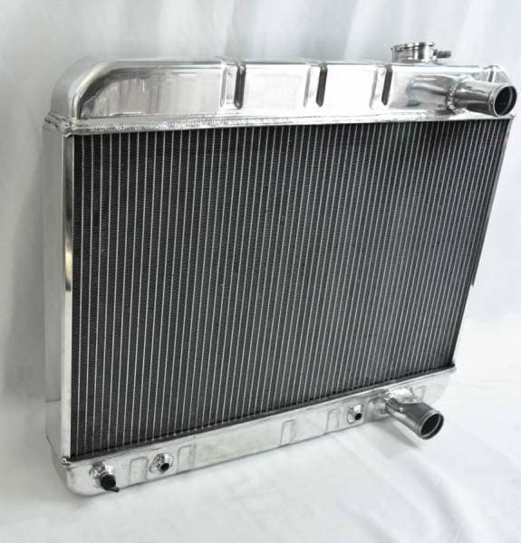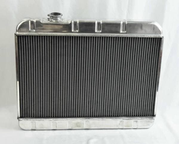 Direct replacement bolt in aluminum radiator for 64-65 GTO, Tempest and LeMans Pontiac models with 15" core. Radiator has built in transmission cooler with dual 1 1/8" high flow tubes for maximum cooling.