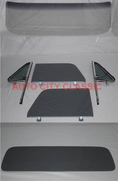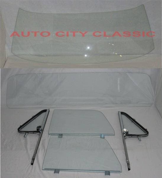 Set Includes: Windshield, 2 vent glasses assembled in frames and posts, 2 door glasses installed in lower channels and large rear deluxe dack glass 14X60