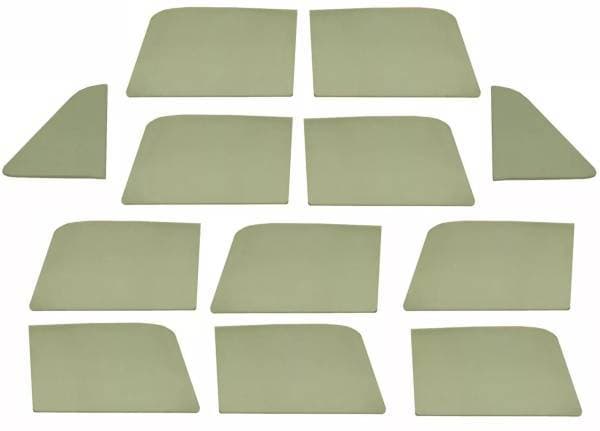 Set Includes: 2 Vent Glasses, 2 Door Glasses, 2 Front Side Stationary Windows, 2 Front Side Sliding Windows, 2 Rear Side Stationary Windows and 2 Rear Side Sliding Windows