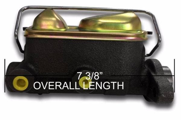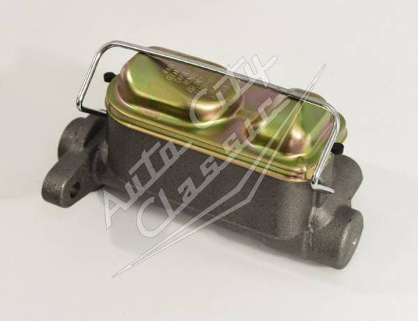 Replacement Ford disc / drum gold master cylinder with dual reservoir for 64-69 Mustang. Works with power or manual brakes. 3/8" and 1/2" fittings with 1" bore