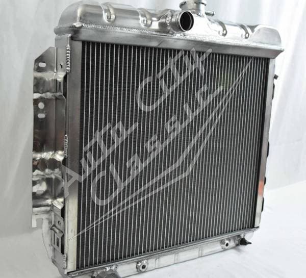 Direct replacement bolt in semi polished aluminum welded radiator with 22" core for 65-66 A Body Mopar models. Original style stamped and ribbed tanks with built in transmission cooler. Radiator has dual 1 1/8" high flow tubes for maximum cooling.