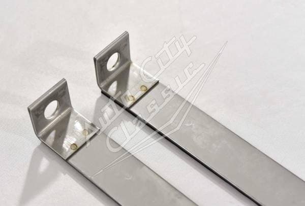 Stainless steel fuel tank straps with pads and generic bolts for 66-70 Ford and Merc Passenger Cars. Straps are 23" in length.