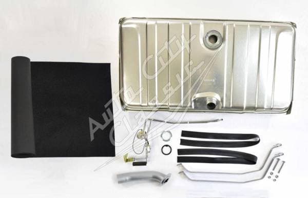 18 Gallon OE Finish Steel Fuel Tank- Optional Sending Unit, Straps, Tank Pad and Filler Neck Pipe Tube OE Finish- Terne Plate Steel Gas Tank- 18 Gallons Dimensions: 39 3/8" x 20 7/8" x 7 3/4"