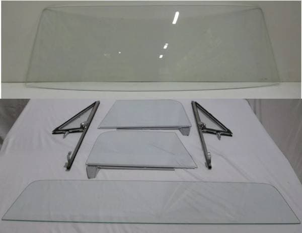 Set Includes: Windshield, 2 Vent Glasses assembled in frames and posts, 2 Door Glasses installed in lower channels and Small Rear Back Glass
