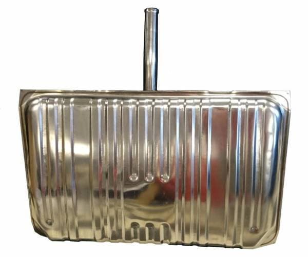 20 Gallon Stainless Steel Fuel Tank- Optional Sending Unit and Straps Stainless Steel Gas Tank with Filler Neck and 3 Vents- 20 Gallons Dimensions: 39 1/4" x 24 1/2" x 7 3/4"