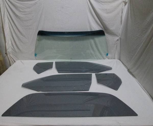 Set Includes: Green Tinted and Shaded Windshield, 2 Door Glasses, 2 Quarter Glasses (3 Hole) and Back Glass