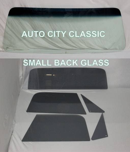 Set Includes: Windshield, 2 Vent Glasses, 2 Door Glasses and Small Rear Back Glass