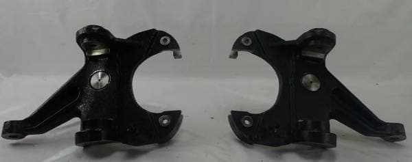 New pair of square body 2 1/2" drop spindles for 73-87 Chevy and GMC Pickup, Suburban and Utility models. These work with original calipers, pads and rotors. Your ride will drop 2". 1" rotors and calipers are required.